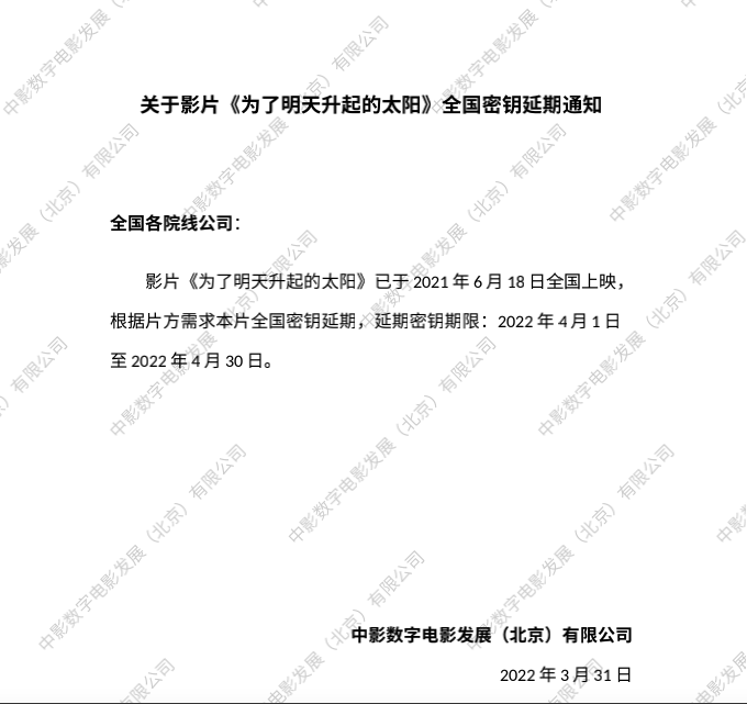 发行通知 » 《为了明天升起的太阳》密钥延期的通知