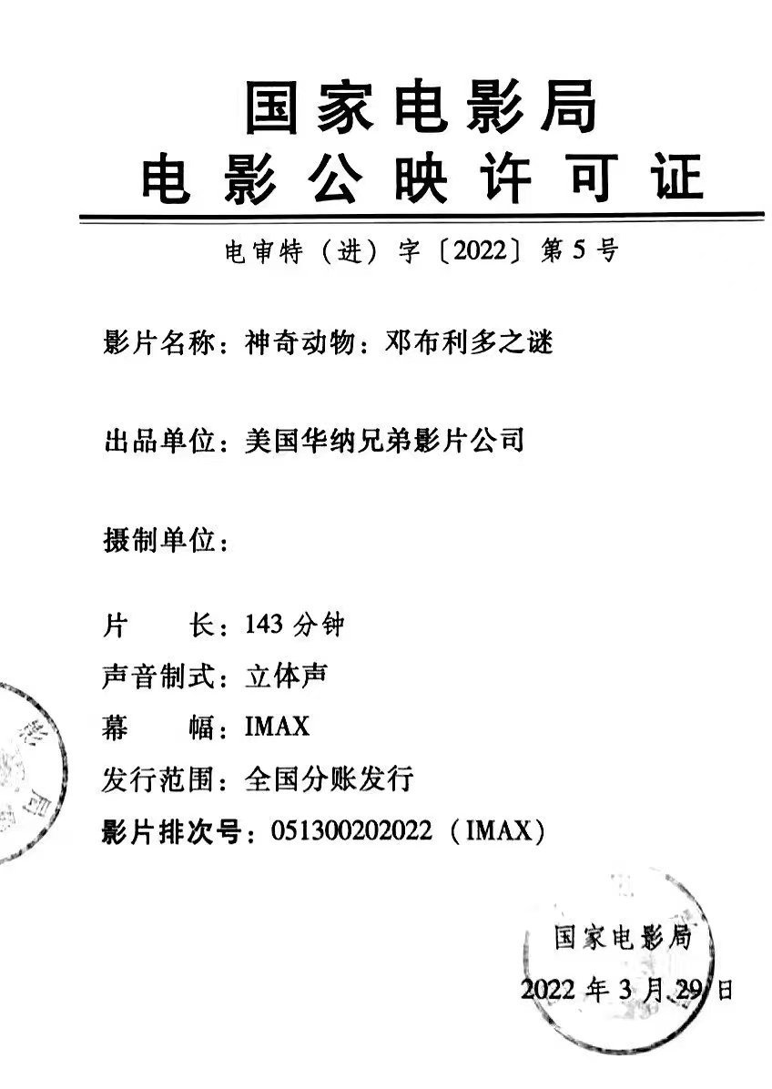 《神奇动物:邓布利多之谜》发行通知(第二次密钥延期)