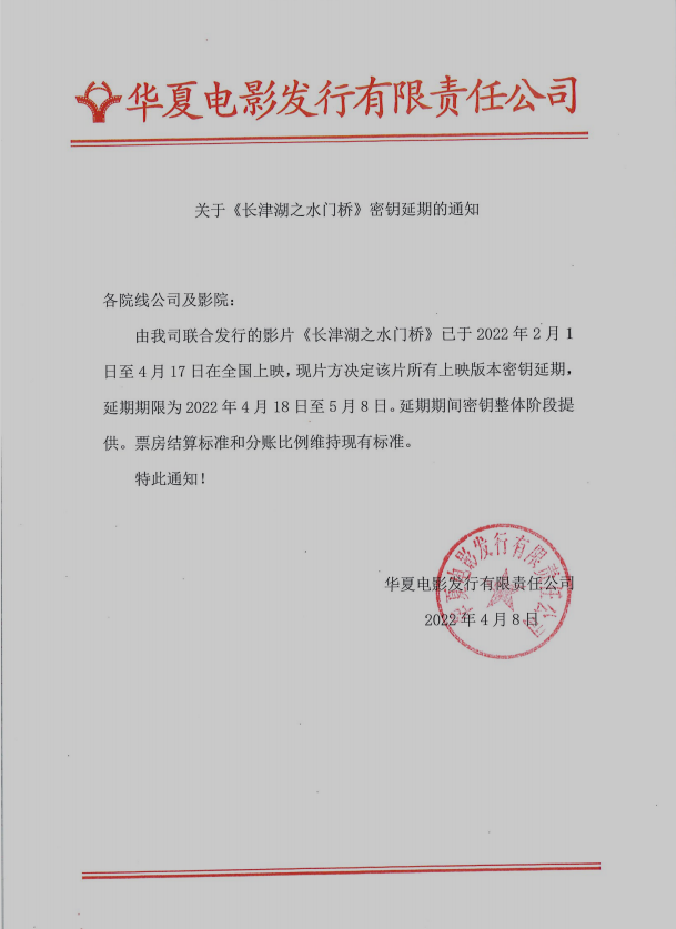 《长津湖之水门桥》密钥延期的通知