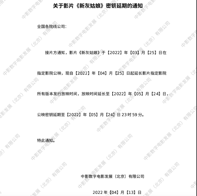 《新灰姑娘》密钥延期的通知