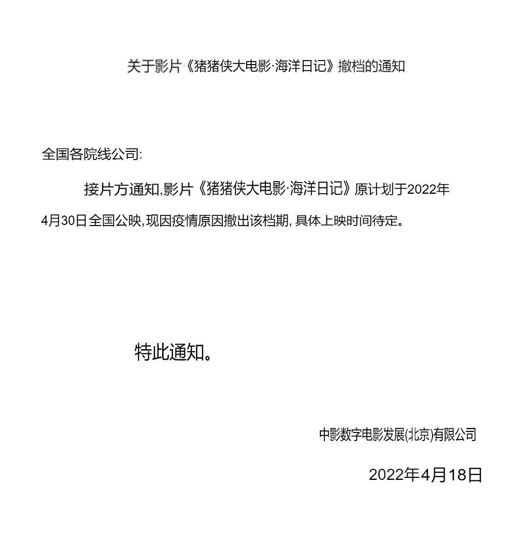发行通知 » 《猪猪侠大电影·海洋日记》撤档通知