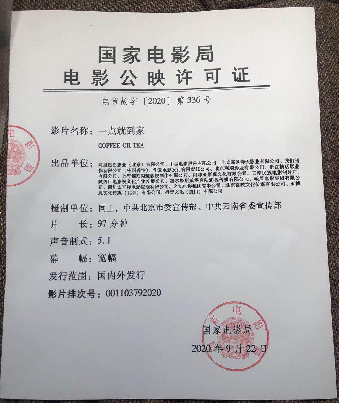 二十大展映影片《一点就到家》发行通知
