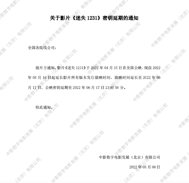 《迷失1231》全国点映的通知
