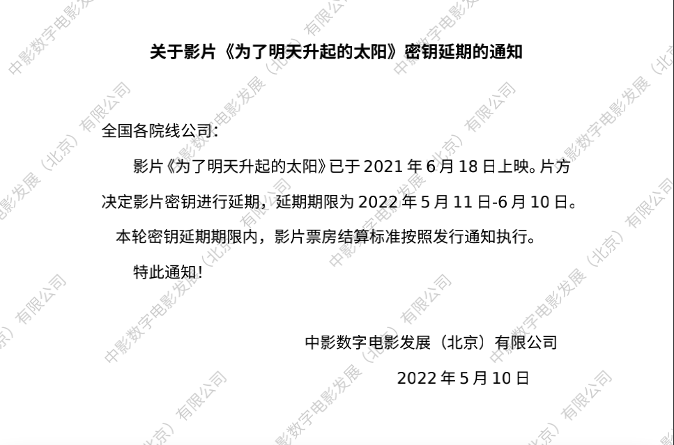 发行通知 » 《为了明天升起的太阳》密钥延期的通知