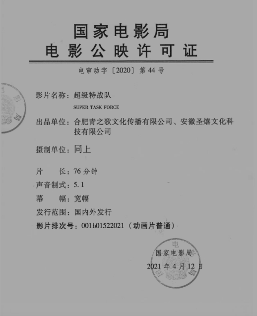 联合发行:安徽漫卡影业有限公司、华夏电影发行有限责任公司