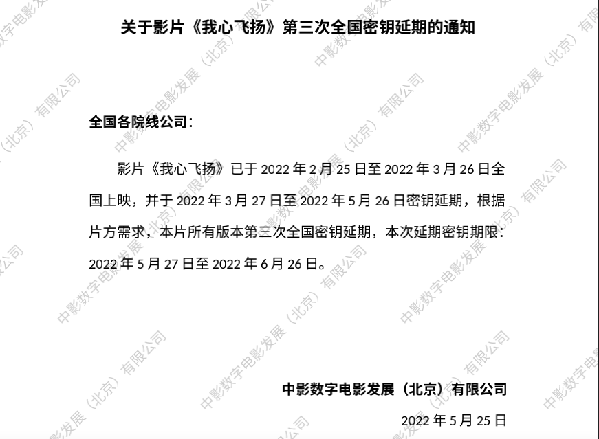 《我心飞扬》第四次全国密钥延期的通知