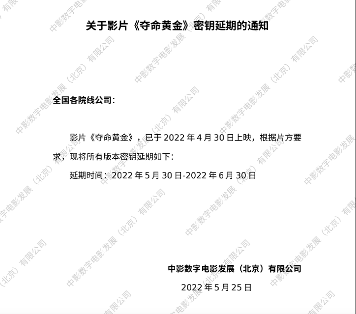 发行通知 » 《夺命黄金》密钥延期的通知