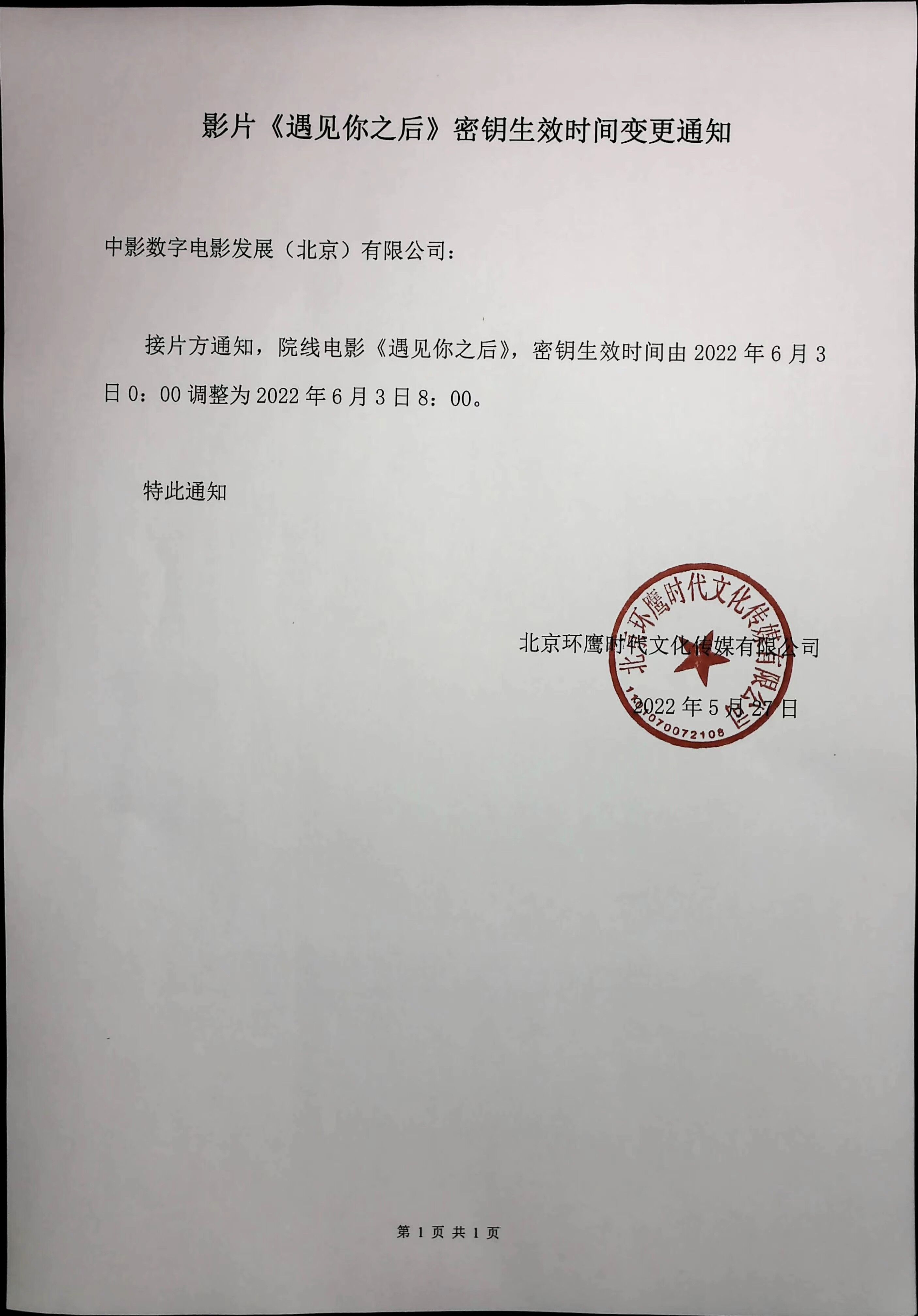 《遇见你之后》发行通知