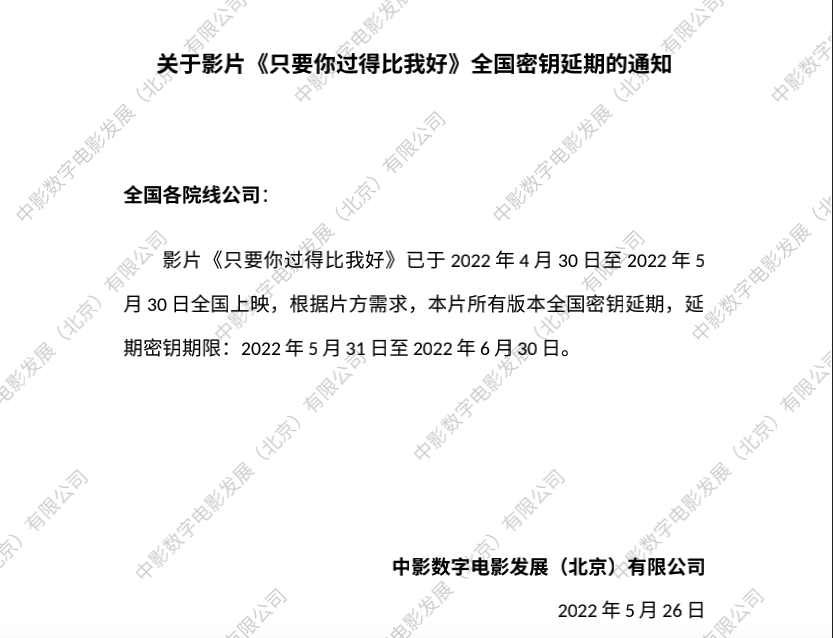 发行通知 » 《只要你过的比我好》全国密钥延期的通知