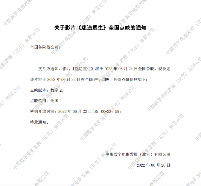 《迷途重生》档期变更的通知