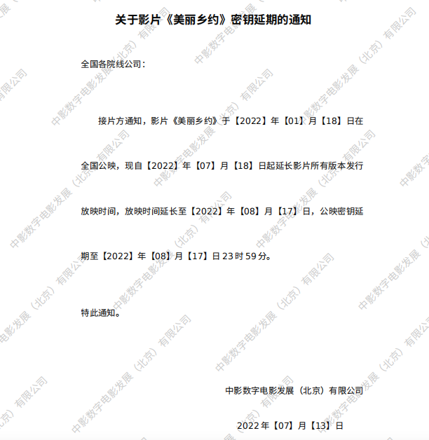 发行通知 » 《美丽乡约》密钥延期的通知