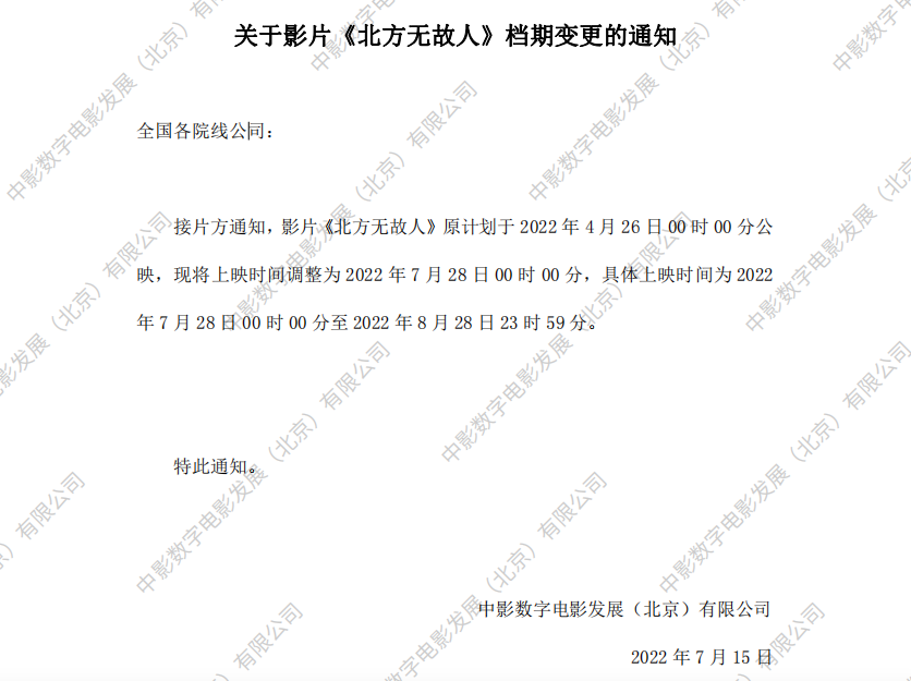 《北方无故人》发行通知