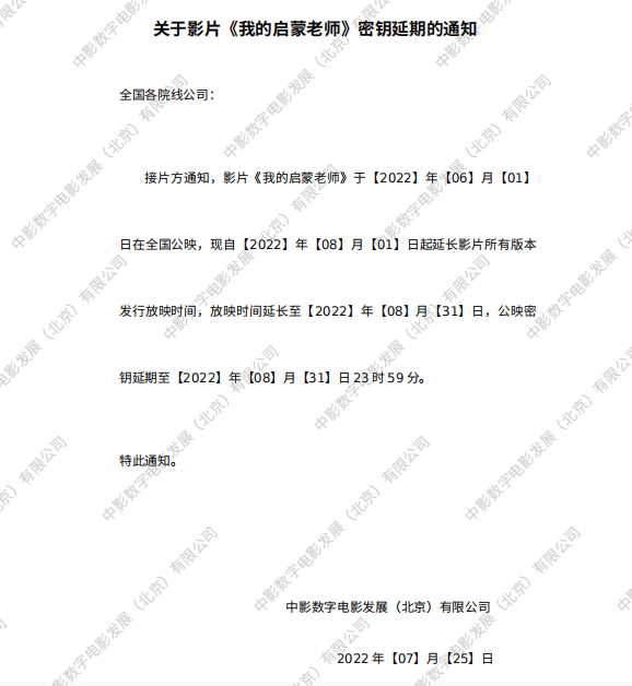 发行通知 » 《我的启蒙老师》密钥延期的通知