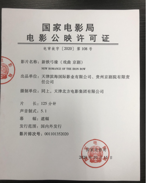 出 品:天津滨海国际影业有限公司、贵州京剧院有限责任公司