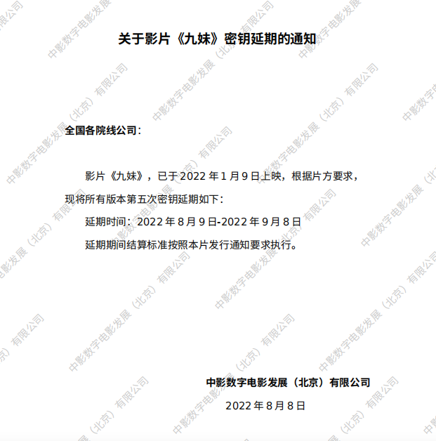 《九妹》密钥延期的通知