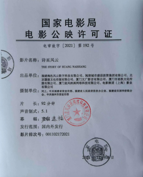 出 品:福建梅邑风云数字科技有限公司、闽清城市建设投资集团有限公司、北京潺源文化传媒有限公司、厦门文广影音有限公司、厦门市思凯文化传媒有限公司、厦门蓝风映画网络科技有限公司、电影频道(上海)影业有限公司