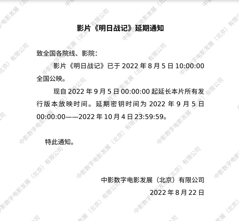 《明日战记》延期的通知