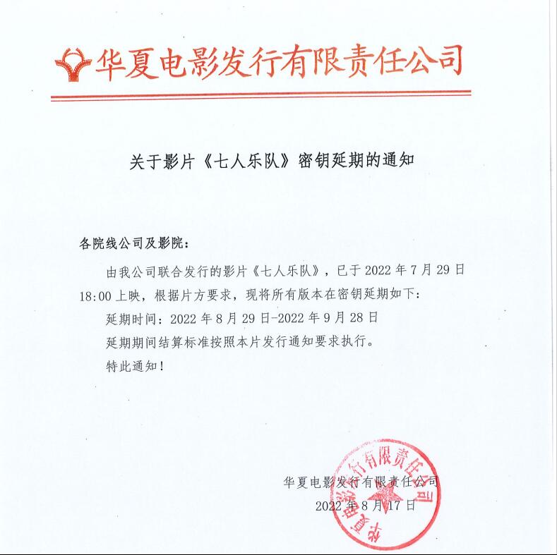 《七人乐队》密钥延期的通知