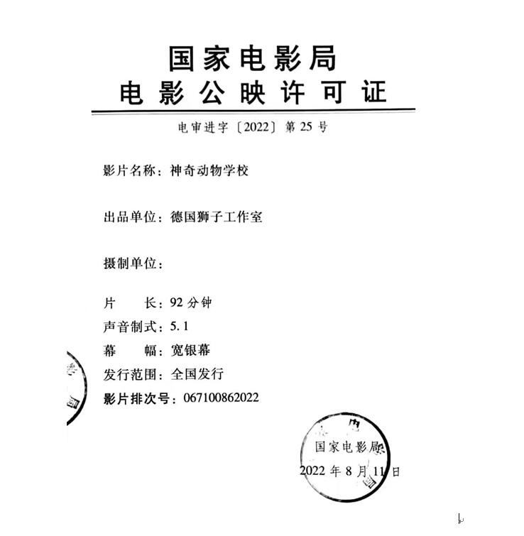 根据贵我双方已经签订的《数字版影片分账发行放映合同》(以下简称“总发行合同”)和排片计划,我公司即将在全国数字影院发行影片《神奇动物学校》,现就该影片的发行和放映工作具体通知(以下简称“本通知”)如下: