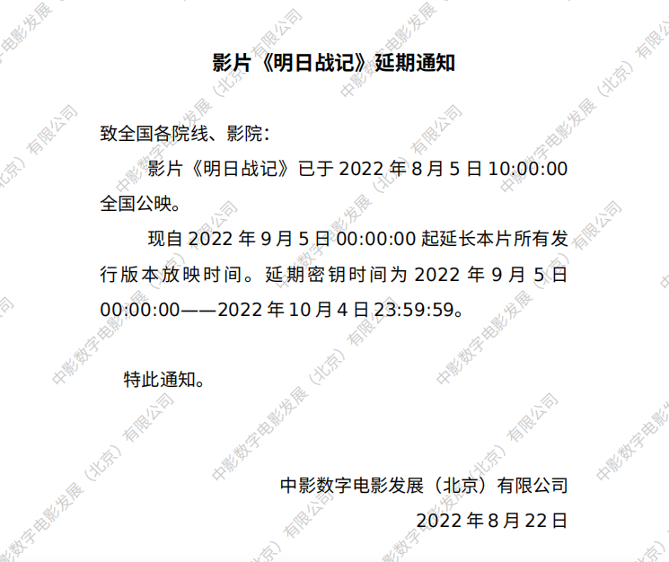 《明日战记》延期的通知