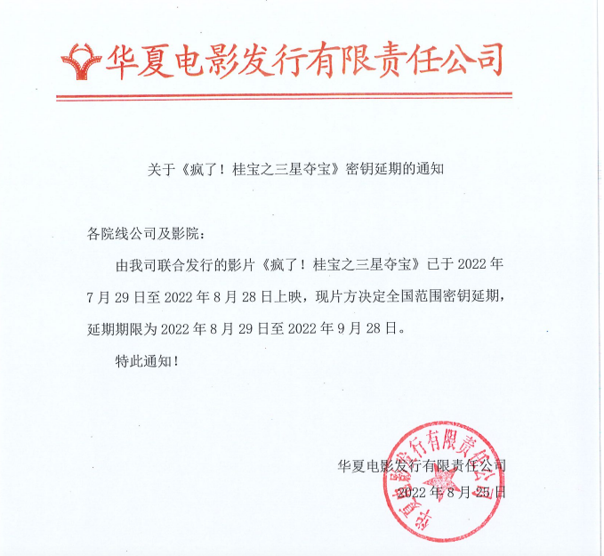 《疯了!桂宝之三星夺宝》全国密钥延期的通知