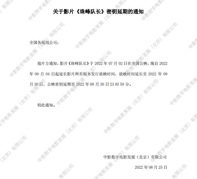 《珠峰队长》密钥延期的通知