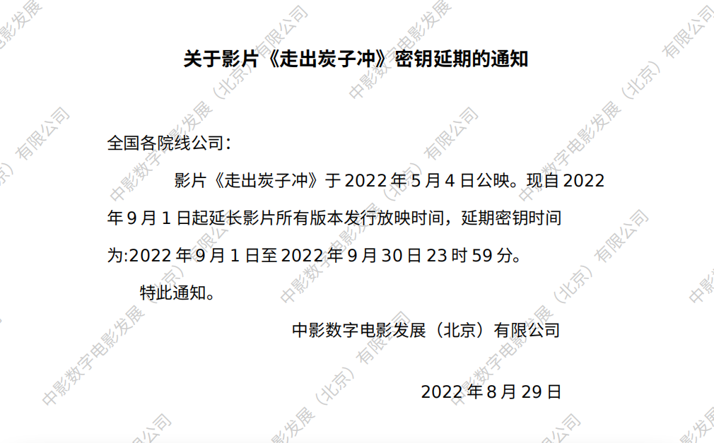 《走出炭子冲》密钥延期的通知