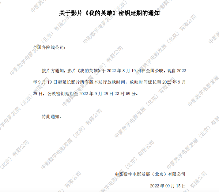 《我的英雄》密钥延期的通知