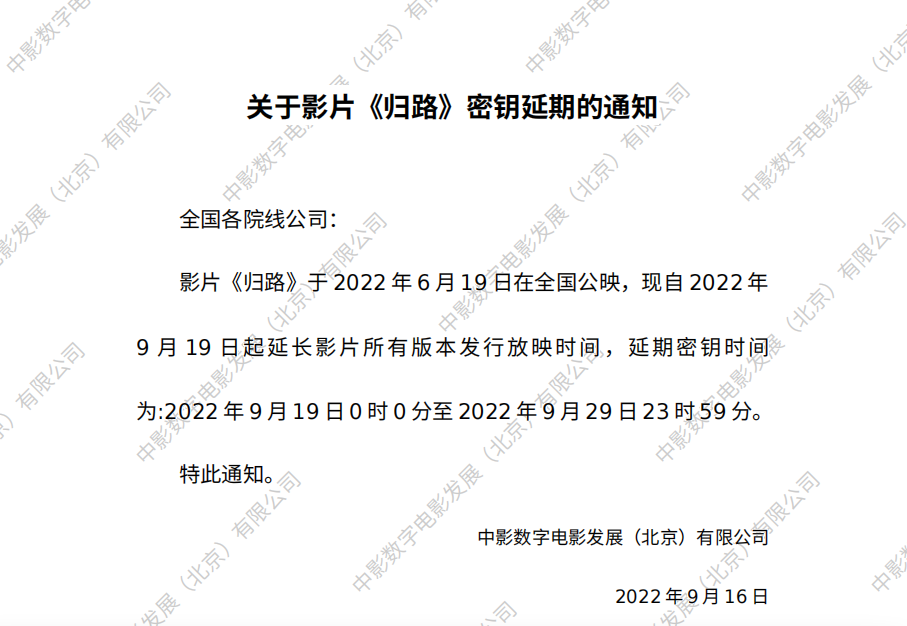 《万里归途》密钥延期的通知