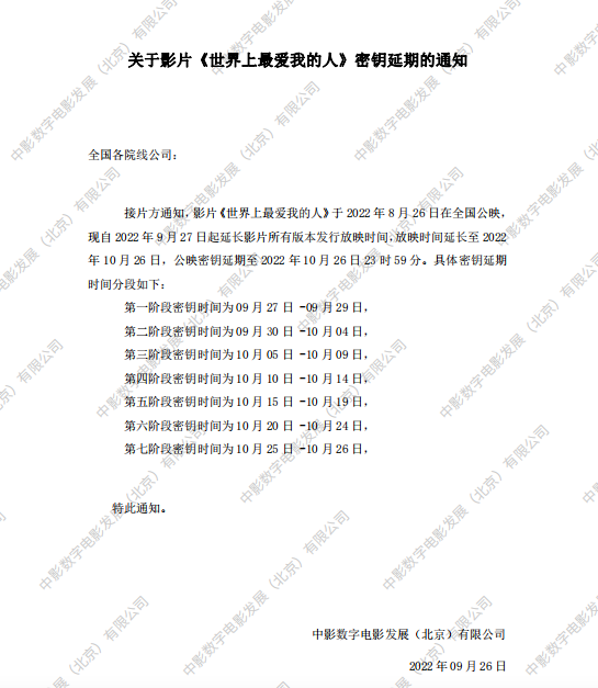 《世界上最爱我的人》撤档的通知