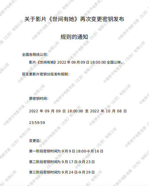 《世间有她》变更密钥发布的规则