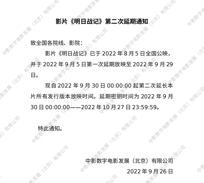 《明日战记》延期的通知