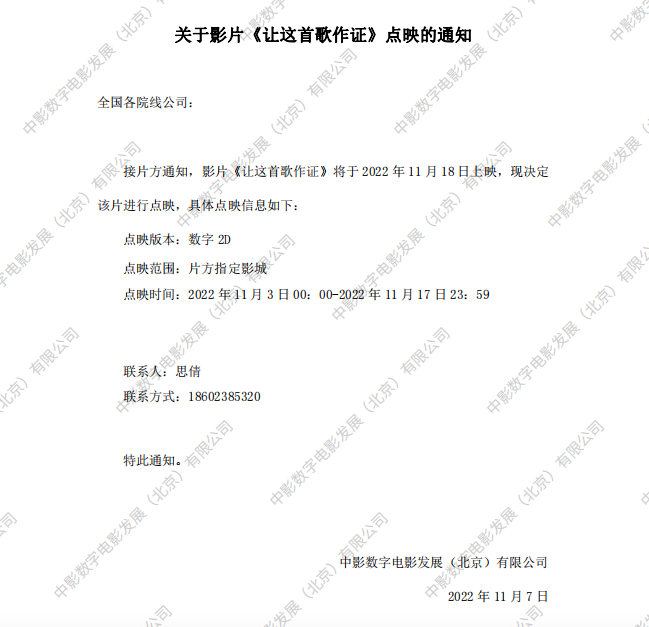 《让这首歌作证》第十五次密钥延期的通知