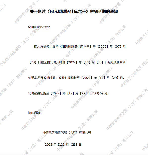 《阳光照耀塔什库尔干》密钥延期的通知