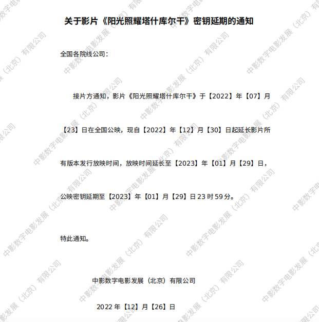 《阳光照耀塔什库尔干》密钥延期的通知