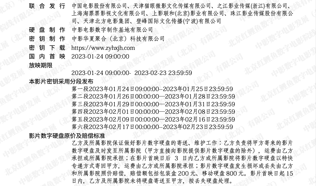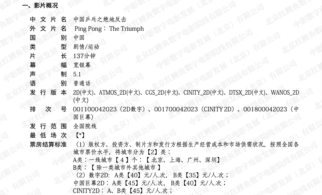 《中国乒乓之绝地反击》二次密钥延期及调整票房结算标准的通知
