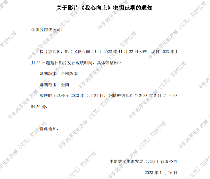 发行通知 » 《我心向上》密钥延期的通知