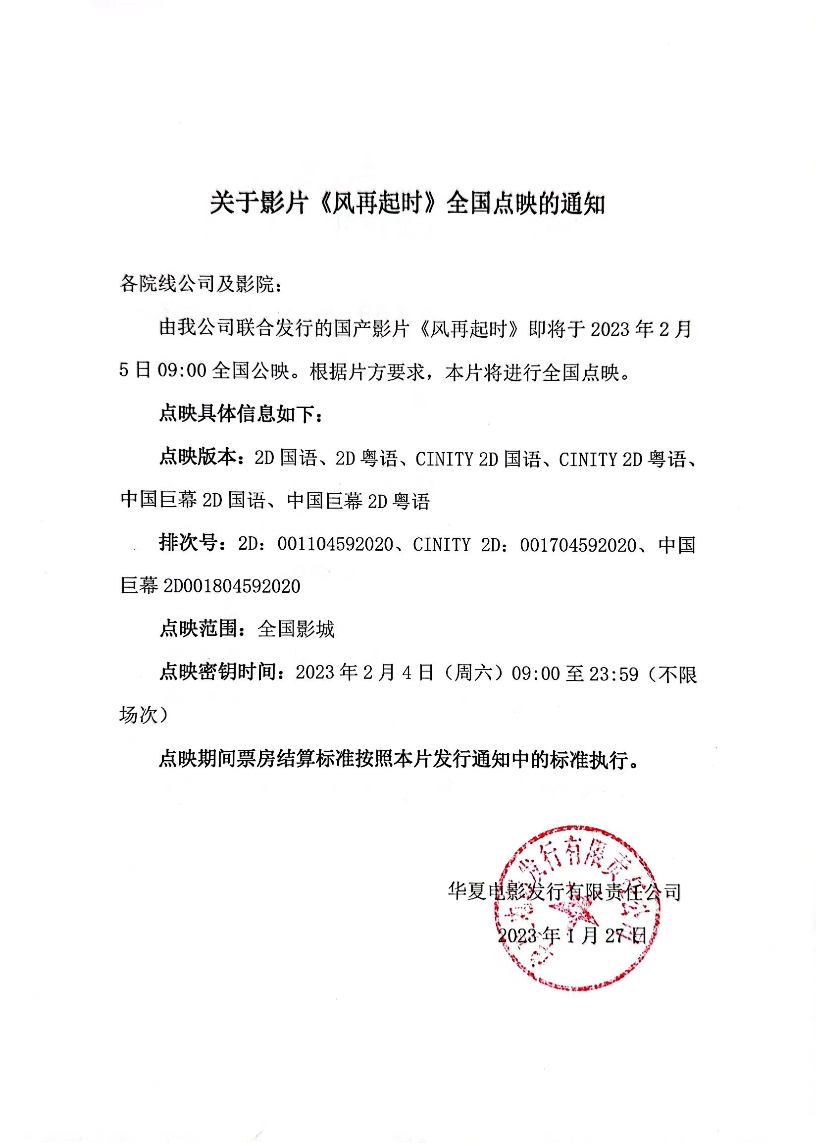 《风再起时》增加公映及点映版本的通知