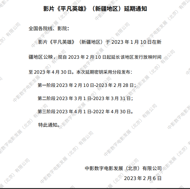 2022国庆档大电影《平凡英雄》发行通知及公映许可证