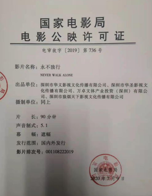 联合出品:深圳市华圣影视文化传播有限公司、万卓文体产业投资(深圳)有限公司、深圳市狼烟天下影视文化传播有限公司