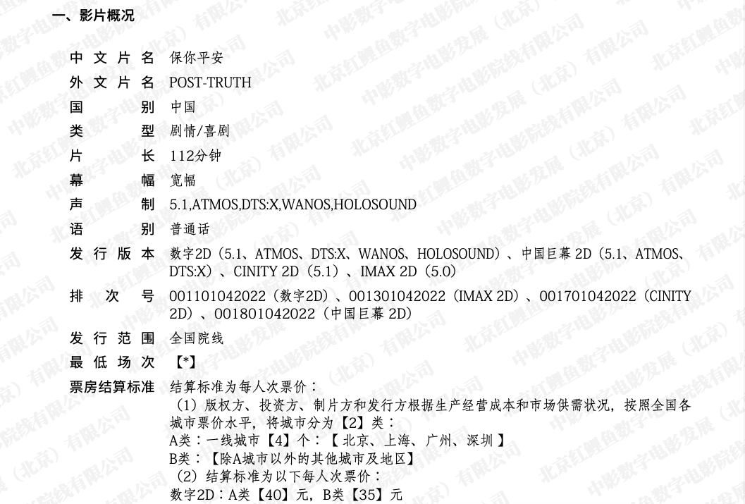 《保你平安》全国点映的通知