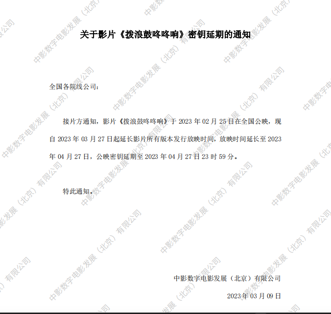 《拨浪鼓咚咚响》第三十二次密钥延期的通知