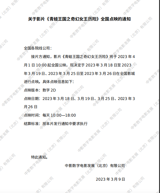 发行通知 » 《青蛙王国之奇幻女王历险》全国点映的通知