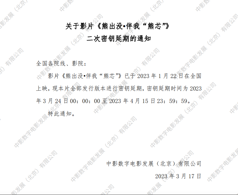 《熊出没·伴我“熊芯”》密钥延期的通知