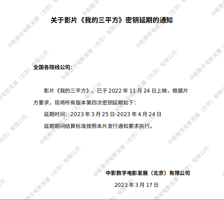 《我,许可》第三轮点映的通知