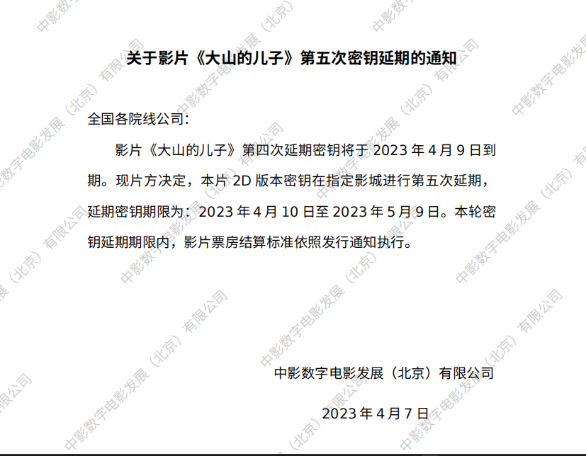 《大山的儿子》第十五次密钥延期的通知