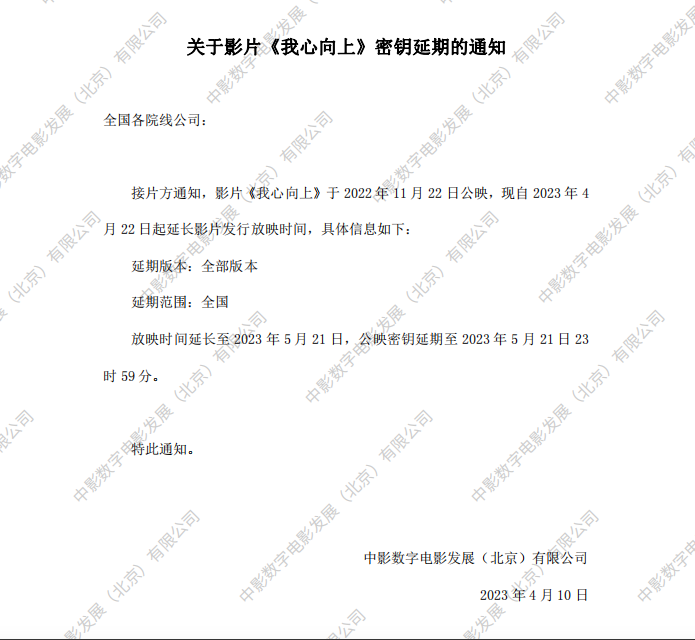 发行通知 » 《我心向上》密钥延期的通知