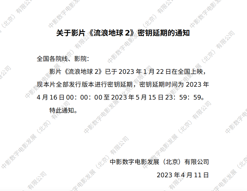 《流浪地球2》密钥延期的通知