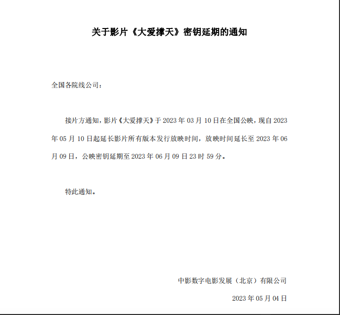 发行通知 » 《大爱撑天》密钥延期的通知
