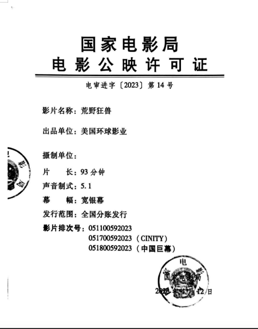 发 行:中国电影股份有限公司北京电影发行分公司(甲区)